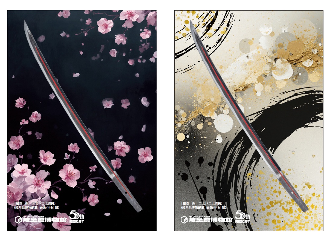 ※特別展チラシデザイン以外の刀剣は岐阜県博物館蔵(刀剣:脇差 銘 二王)、特別展会期中は展示されません。(9年1〜3月の企画展で展示予定です。)